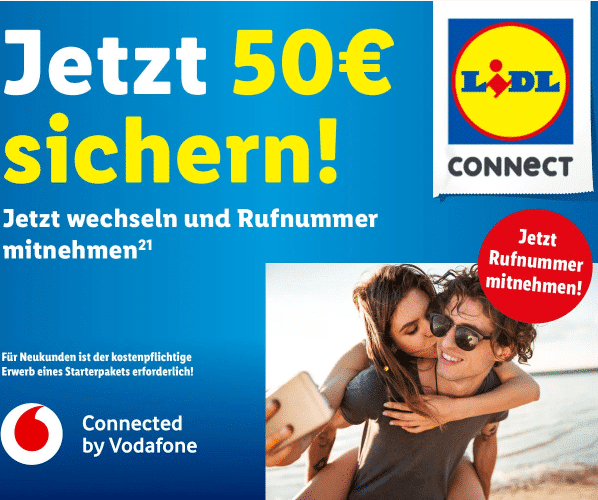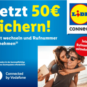 Lidl Connect Prepaid Karte gratis (ab 15€ Einkauf) mit bis zu 65 Euro Startguthaben (abzüglich Tarif)