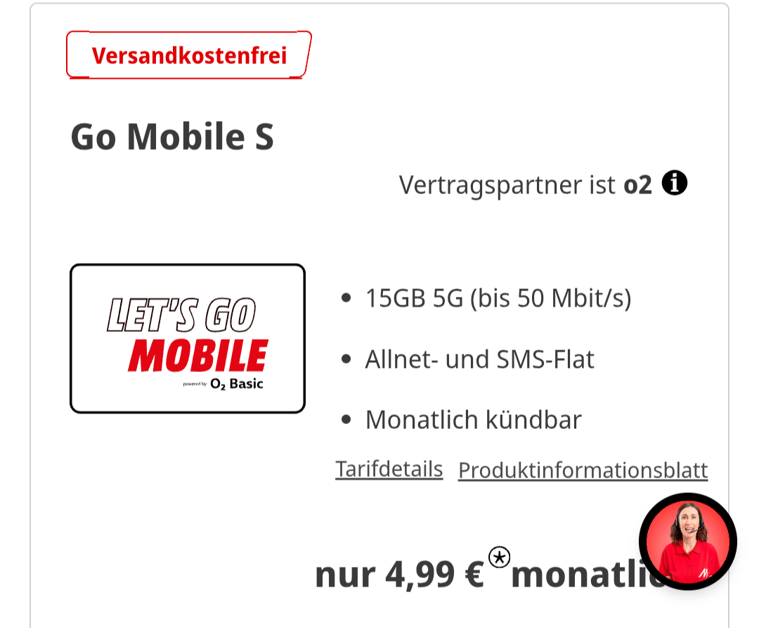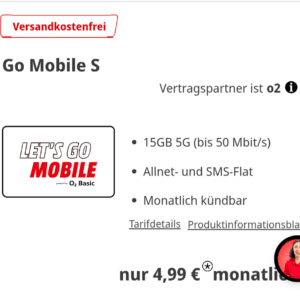 Media Markt bietet einen schönen Einsteigertarif im O2 Netz inkl. 5G für 4,99€ pro Monat