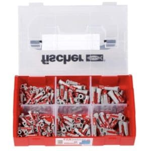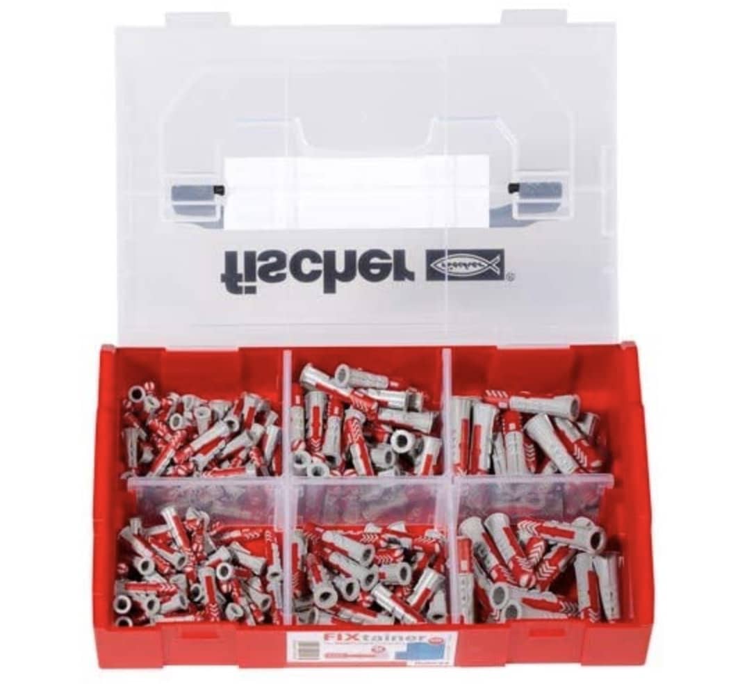 - Lieferumfang: 1 x FIXtainer DUOPOWER (Art.-Nr. 535968), vorsortierte Kiste mit 210 DUOPOWER Dübeln (120 Stk. 6 x 30, 60 Stk. 8 x 40, 30 Stk. 10 x 50) von fischer.
