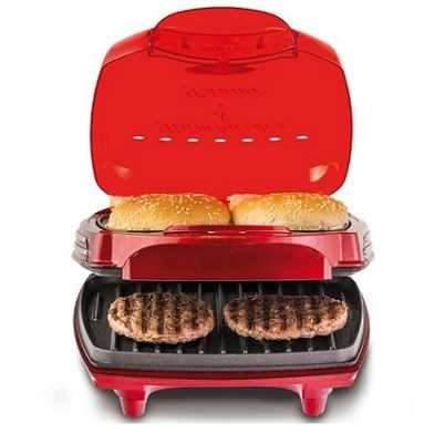 Partytime! Der Hamburger Maker im schicken Retrostyle der 50-er Jahre grillt zwei Hamburger-Pattys und röstet zwei Hamburger-Brötchen gleichzeitig. In nur 5 Minuten sind diese zum Verzehr bereit.Das schöne Design verleitet dazu, den Hamburger Maker erst gar nicht im Schrank zu verstauen, sondern ihn jederzeit griffbereit auf der Arbeitsplatte Ihrer Küche stehen zu lassen.