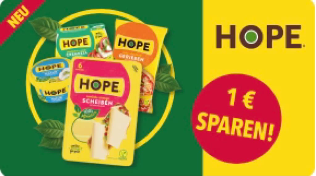 5x 1€ Cashback auf Hope Vegankäse über Scondoo