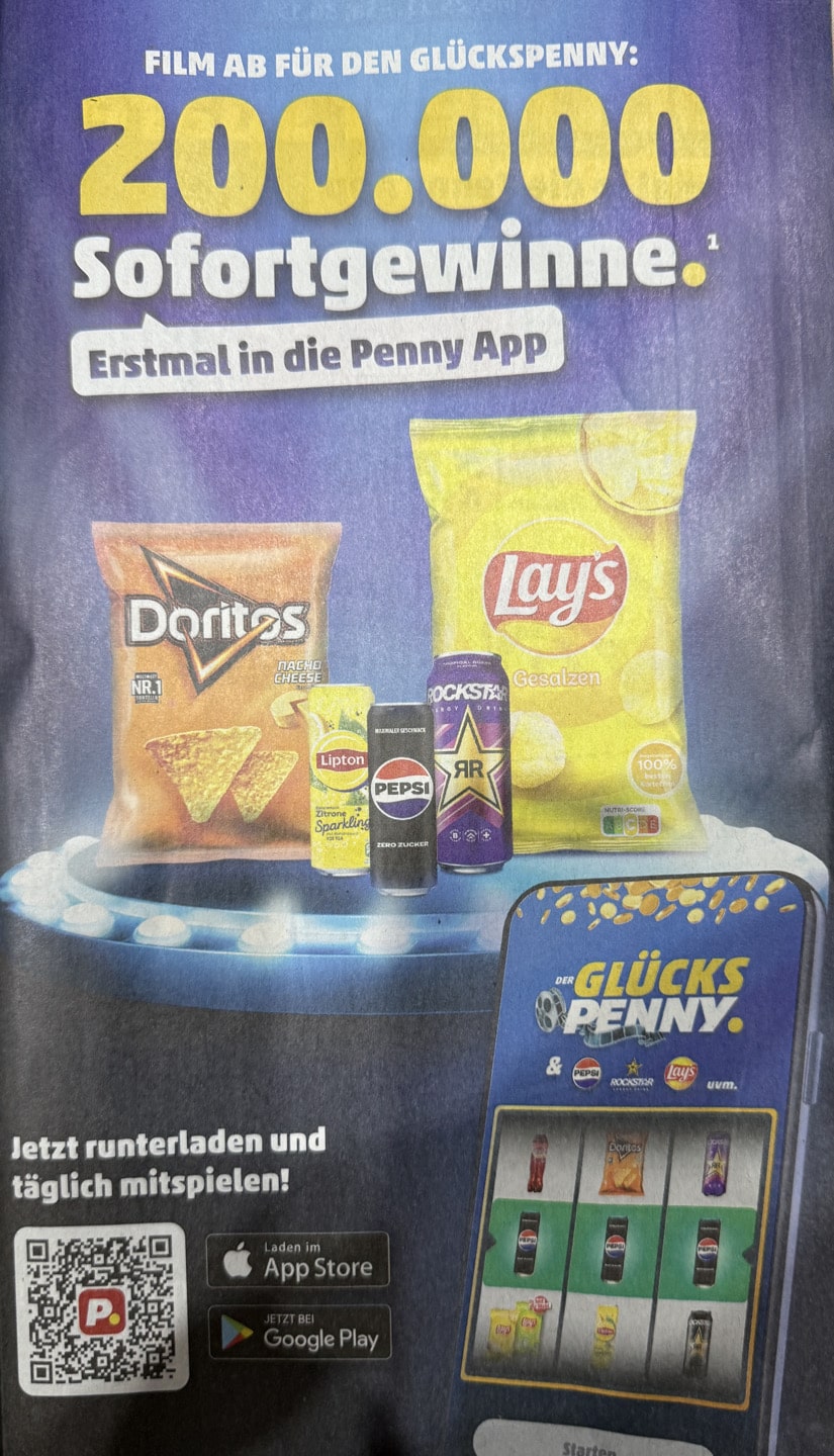 Penny startet von 25.11. bis 07.12.24 wieder das App-Gewinnspiel „Glückspenny“ in der Penny App mit 200.000 Sofort-Gewinnen von vielen Marken.