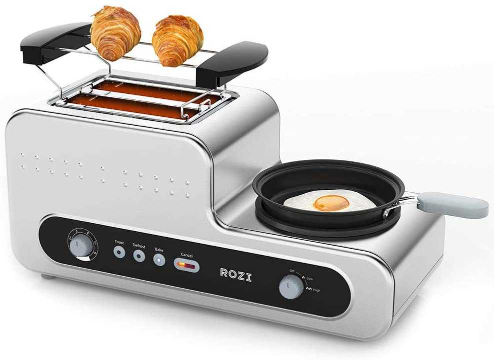 Frühstücksmaschine 🍳🍞 Toaster&Pfanne von Rozi in silber mit 1230 W