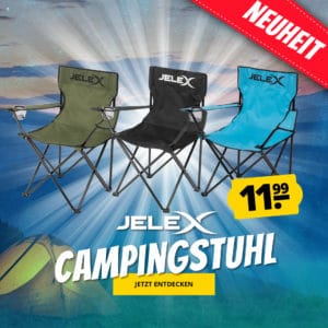 Die Festival-Saison ist in vollem Gange und auch für Angler sicherlich interessant: Der JELEX Campingstuhlin drei verschiedenen Farben für 11,99€ pro Stück!