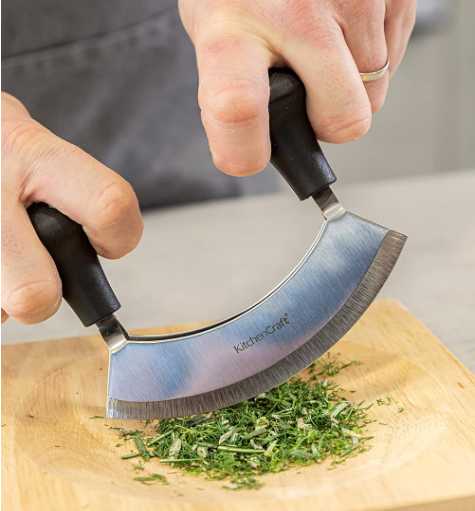 KitchenCraft Mezzaluna Hackmesser und Holzschneidebrett