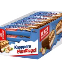 • Der Knoppers NussRiegel überzeugt mit knusprig gebackenen Waffeln, einer leckeren Milch- und Nugatcreme, knackigen Haselnüssen, Karamell und Vollmilchschokolade – ein Highlight für Riegel Fans