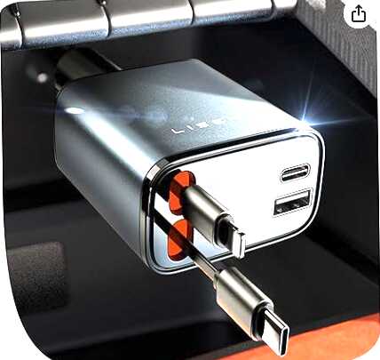 - Einziehbares Design: Zigarettenanzünder-USB C – Schluss mit Kabelchaos! Das automatisch einziehbare USB C und für iPhone Kabel zieht sich nach Gebrauch automatisch zurück. So bleibt Ihr Auto immer aufgeräumt, und die Kabel sind vor Verschleiß geschützt – kein Kabelsalat, nur volle Leistung.