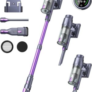 - 【Anti-Verwicklung Walzenbürste und LED-Display】Der Stabstaubsauger verfügt über eine 25W motorisierte Bodenbürste mit V-förmiger Walzenbürste, die Verheddern von Haaren minimiert. Das LED-Display zeigt Warnungen vor Bürstenverstopfung sowie vollem Staubbehälter für ein smartes Reinigungserlebnis an.