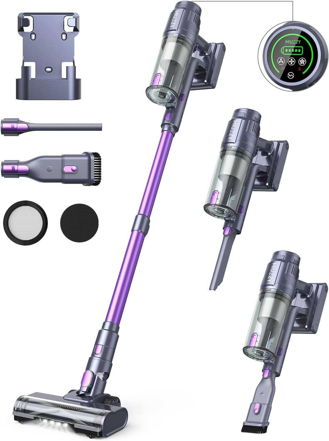 - 【25kPa Leistungsstarke Saugkraft】 Mit einem 230W bürstenlosen Motor ermöglicht MIUZZY M242 kabelloser Staubsauger eine schnelle gründliche Reinigung von Schmutz, Staub, Krümeln, Tierhaaren und anderen Partikeln auf verschiedenen Oberflächen wie Böden, Teppichen und Möbeln, was den Reinigungsprozess effizienter macht und Zeit spart.