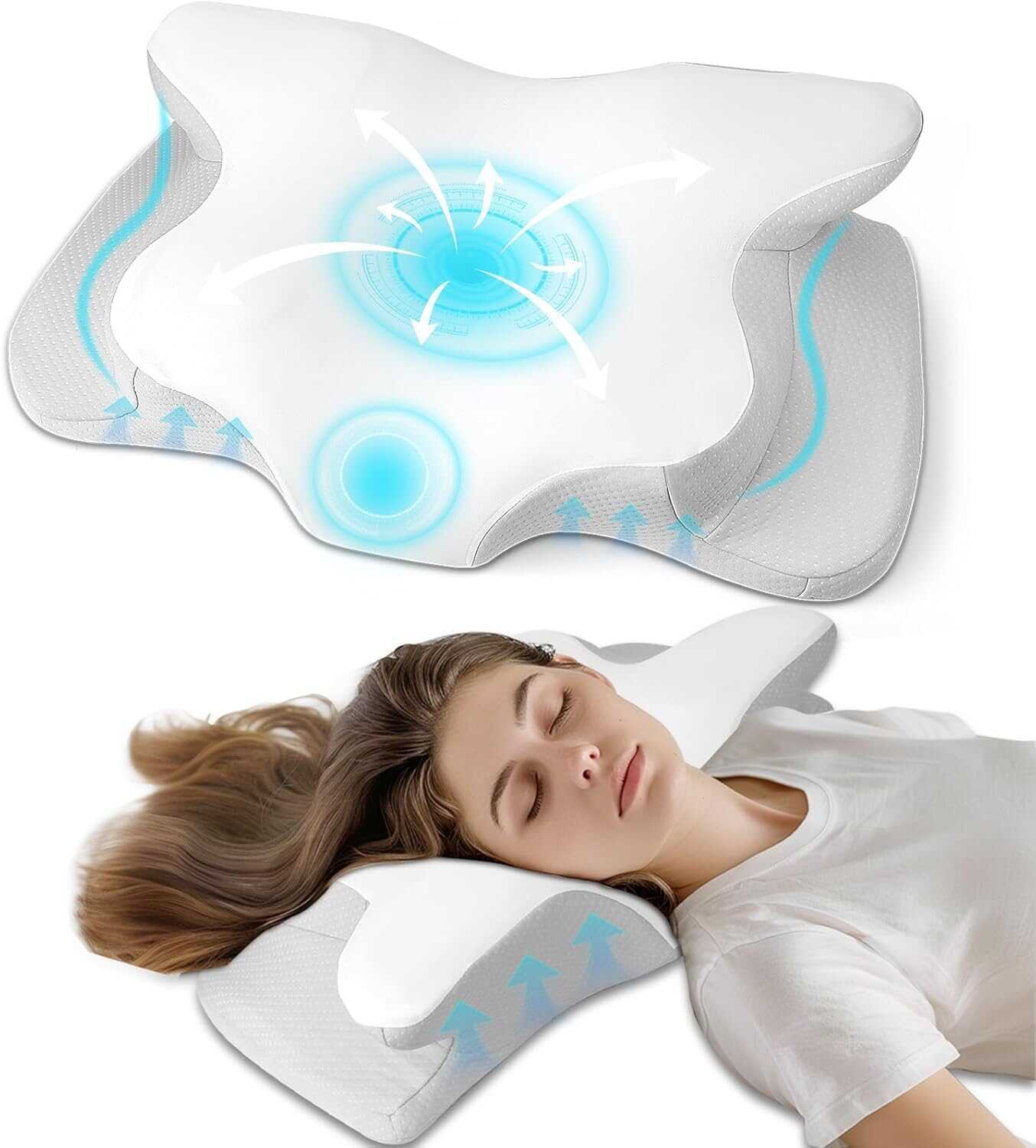 Ergonomisches Design: Das in Deutschland entworfene Kissen schmiegt sich dank seines Wellendesigns perfekt um euren Kopf und Nacken. Es bietet eine hervorragende Unterstützung für Kopf, Nacken, Schultern und Rücken und ermöglicht es euch, bequem zwischen verschiedenen Schlafpositionen zu wechseln. Feste Unterstützung: Das Schmetterlingskissen verfügt über fünf einzigartige Konturbereiche und kombiniert die Vorteile herkömmlicher Kissen mit denen von Konturkissen. Die geneigte, um 15 Grad geneigte Hohlfläche stützt euren Kopf und hilft, Nacken- und Rückenschmerzen, Schnarchen und Atemprobleme im Schlaf zu reduzieren.