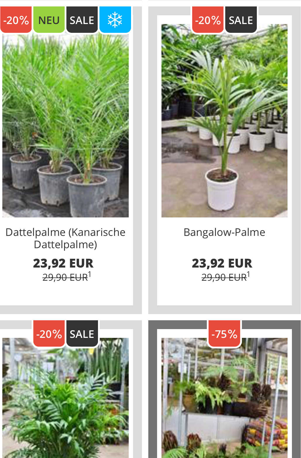 Palmenmann.de hat zwischen 17-75% diverse Palmen reduziert
