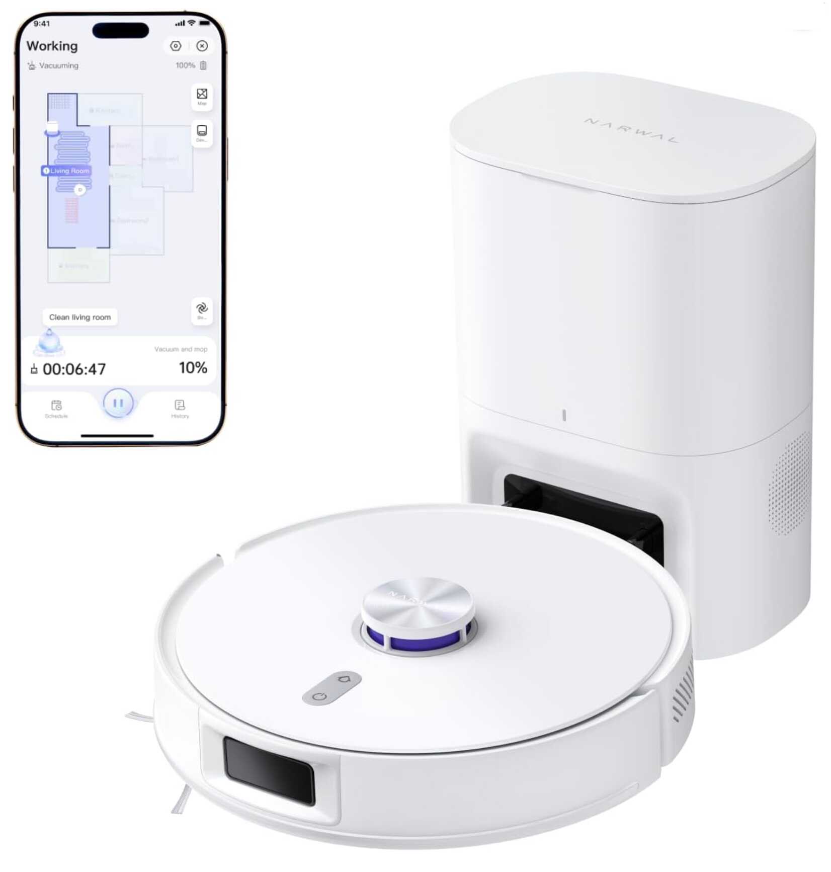 [Prime] NARWAL Freo S Saugroboter mit Wischfunktion, 8000Pa, 8N Reinigungsdruck, Auto-Entstaubungsstation 3.5L, LDS-Lasernavigation und 3D Mapping, APP-Fernsteuerung, Wischroboter für Teppich/Tierhaare