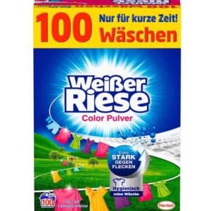 Weißer Riese Color Pulver, Colorwaschmittel, 100 Waschladungen für 12,79€.