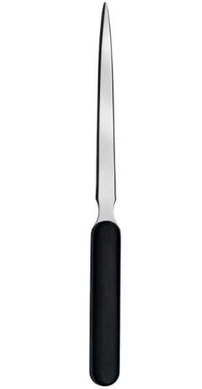 Der Öffner hat eine rostfreie Stahlklinge mit 19cm Länge, welche von einem Kunststoffgriff mit Gummierung ummantelt ist, und öffnet eure Briefe.