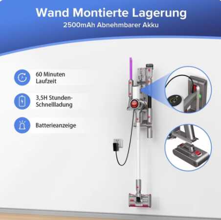 - 26500Pa Super-Saugleistung: Der Akku-Staubsauger Redroad 17 ist mit einem top-intelligenten bürstenlosen 450W Magnetschwebemotor ausgestattet.