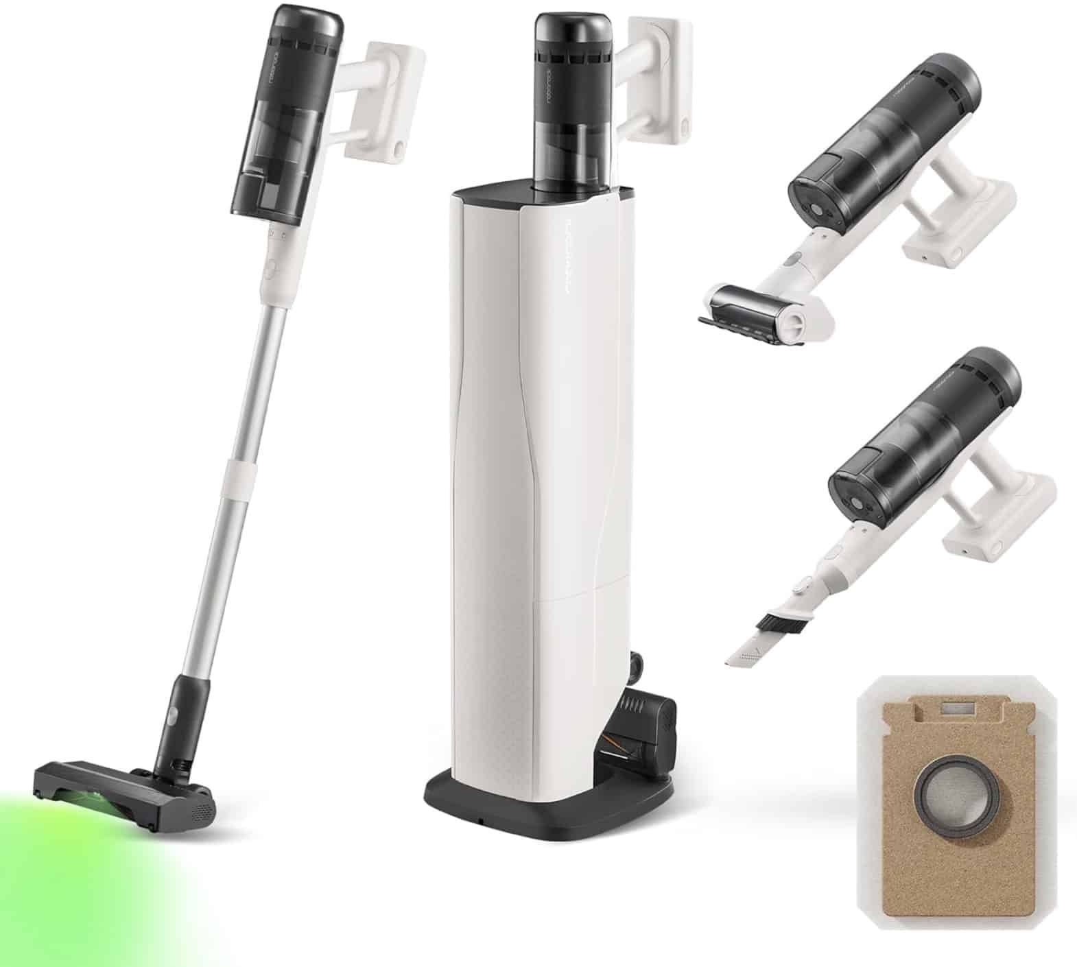- Vielseitige Zubehörteile & ordentliche Aufbewahrung: Die V-förmige Bürste mit weichen Borsten und Gummistreifen passt sich verschiedenen Böden an, von Hartböden bis Teppichen. Die mitgelieferten Werkzeuge erleichtern die Reinigung von Tierbetten, Polstern und Autoinnenräumen. Die automatische Absaugstation sorgt für platzsparende und saubere Aufbewahrung.