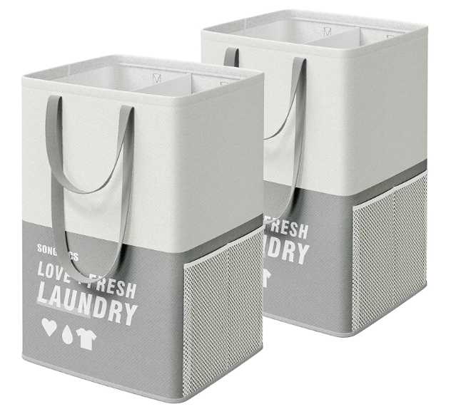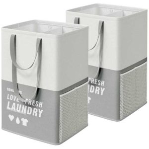 SONGMICS 2x Wäschekorb mit 2 Fächern (90L)