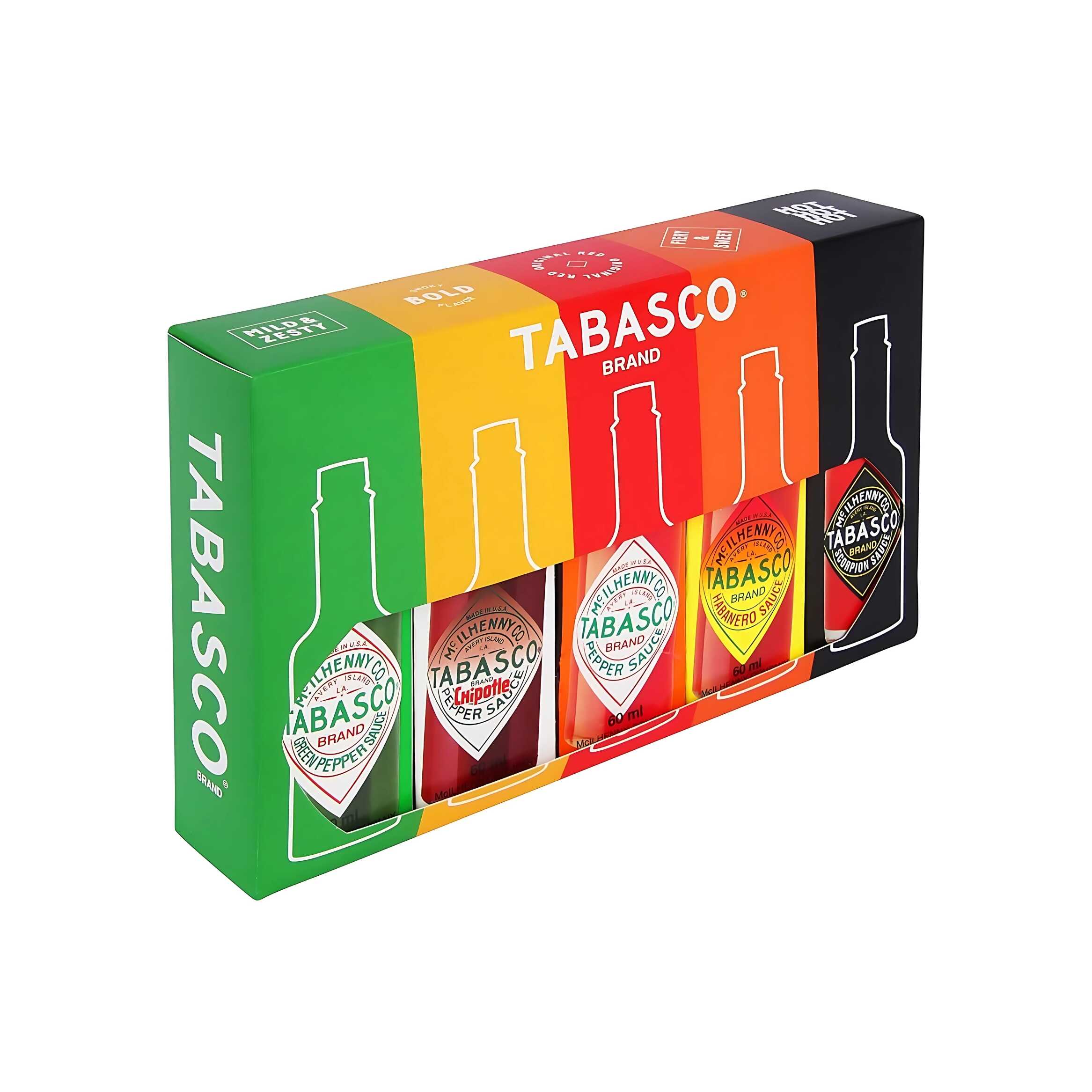 TABASCO Hot Sauce Geschenkset – 5×60 ml Mini-Flaschen (Green Jalapeño, Chipotle, Original Red, Habanero, Scorpion)