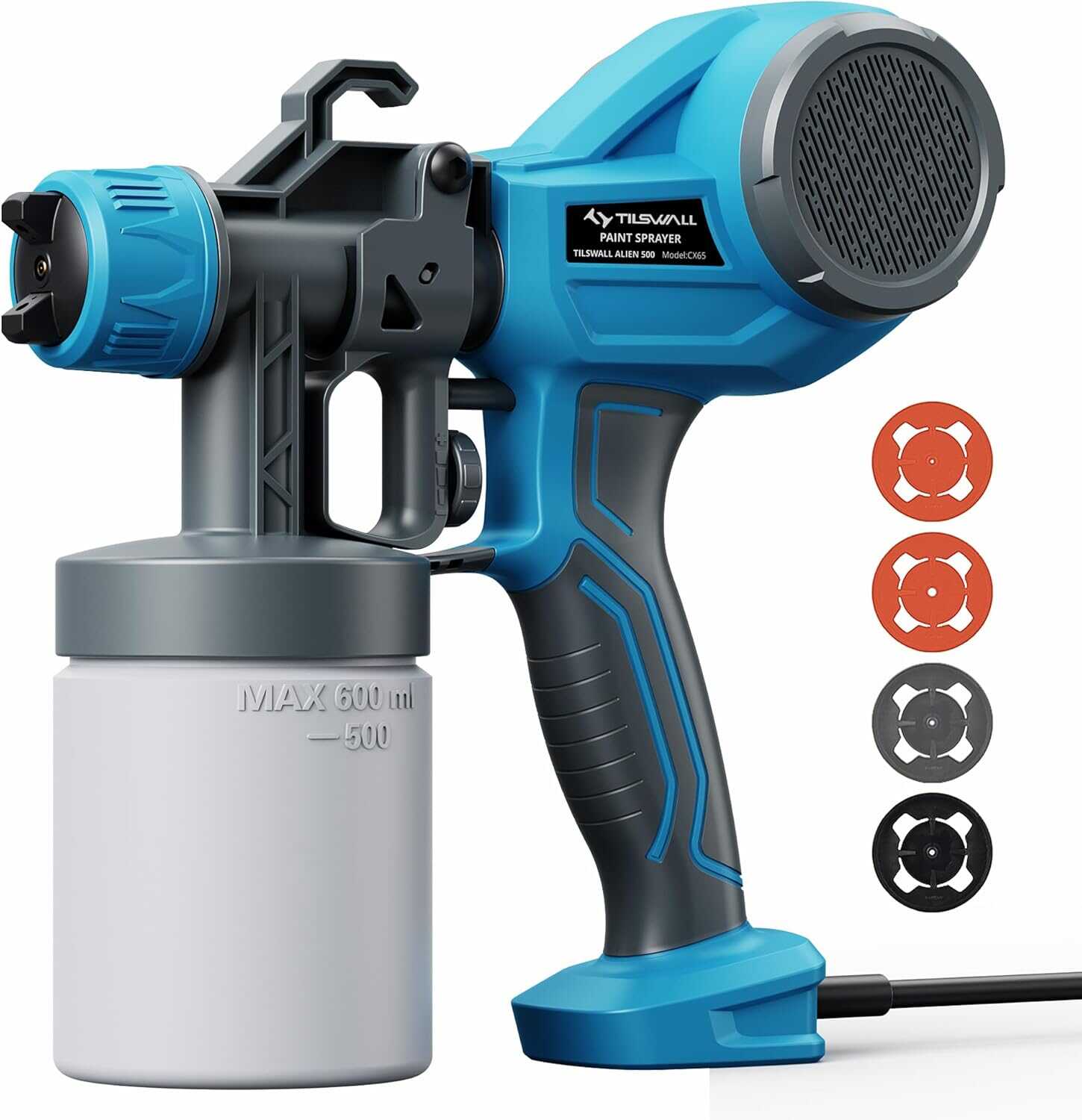 - 【Leichter elektrischer Sprayer】Das Tilswall-Farbsprühgerät ist kompakt und leicht und wiegt nur 0,7 kg, was für uns ein weiterer großer Vorteil ist, da es leichter ist als andere Farbsprühpistolen auf dem Markt. Selbst wenn Sie ein Mädchen mit sehr wenig Kraft sind, können Sie sie leicht mit einer Hand bedienen. Dieses HVLP-Farbspritzsystem hat einen ergonomischen Griff, der die Ermüdung der Hände reduziert, so dass Sie auch nach langen Arbeitsstunden nicht müde werden, was Ihre Arbeitseffizienz erheblich verbessert.