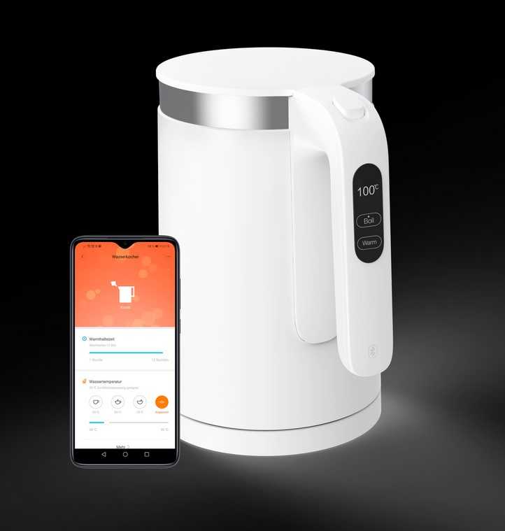 - Einfache Steuerung per Tastendruck am Wasserkocher oder iOS & Android Smartphone über die Mi Home App