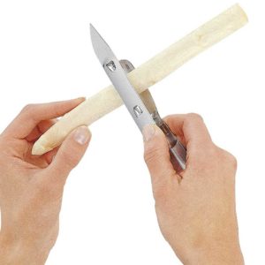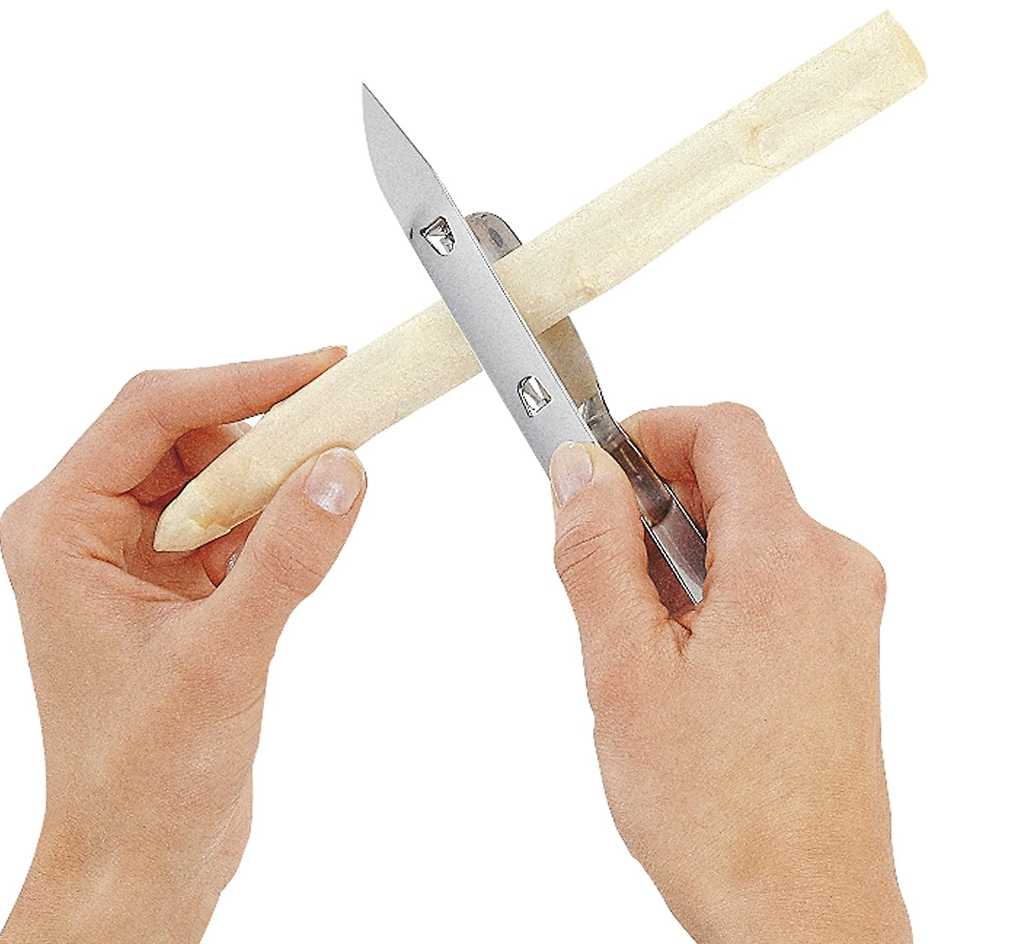 - Mit der beweglichen klinge wird der spargel knapp und gleichmäig geschält für linshänder und rechtshänder geeignet