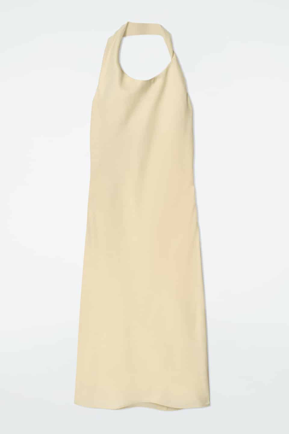 Dieses Kleid von H&M ist genau das Teil, das man anzieht, wenn man sich ohne viel Aufwand sofort gut gestylt fühlen möchte. Es hat diese besondere Mischung aus Leichtigkeit und Eleganz, die perfekt zu warmen Tagen passt – egal ob im Alltag, im Urlaub oder bei einem spontanen Treffen draußen.Der erste Eindruck: luftig, weich und angenehm natürlich. Der leichte Materialmix mit hohem Lyocell-Anteil und Leinen sorgt dafür, dass sich das Kleid kühl auf der Haut anfühlt und auch an wärmeren Tagen nicht beschwert. Gleichzeitig hat der Stoff eine schöne, leicht strukturierte Optik, die dem Look Tiefe gibt, ohne aufdringlich zu wirken.Was das Design besonders macht, ist die gedrehte Halterneck-Optik am Ausschnitt. Sie verleiht dem Kleid eine moderne, fast schon elegante Note, während der offene Rücken mit elastischem Einsatz für einen femininen, entspannten Look sorgt. Es ist genau diese Kombination aus Details, die das Kleid besonders wirken lässt, ohne kompliziert zu sein.Die Passform ist angenehm locker (Regular Fit) und fällt in einer schmeichelnden Midi-Länge, die sich vielseitig tragen lässt. Du kannst es tagsüber ganz entspannt mit Sandalen und einer Tasche kombinieren oder abends mit etwas Schmuck und anderen Schuhen direkt etwas schicker stylen – es passt sich deinem Moment an.Auch praktisch gedacht: Der Reißverschluss sorgt für einfaches An- und Ausziehen, während das Innenfutter zusätzlichen Komfort gibt. So fühlt sich das Kleid nicht nur gut an, sondern sitzt auch zuverlässig und angenehm.Was dieses Kleid am Ende ausmacht, ist dieses mühelose Gefühl: Du ziehst es an, und der Look steht sofort. Es ist leicht, stilvoll und unkompliziert – genau das Richtige für Tage, an denen man sich frei bewegen und trotzdem gut aussehen möchte.