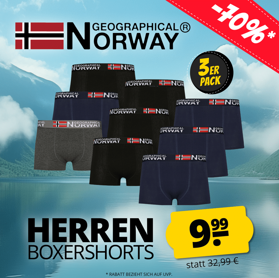 Bei SportSpar gibt es folgende Boxershorts: Geographical Norway Herren Boxershorts im 3er-Pack