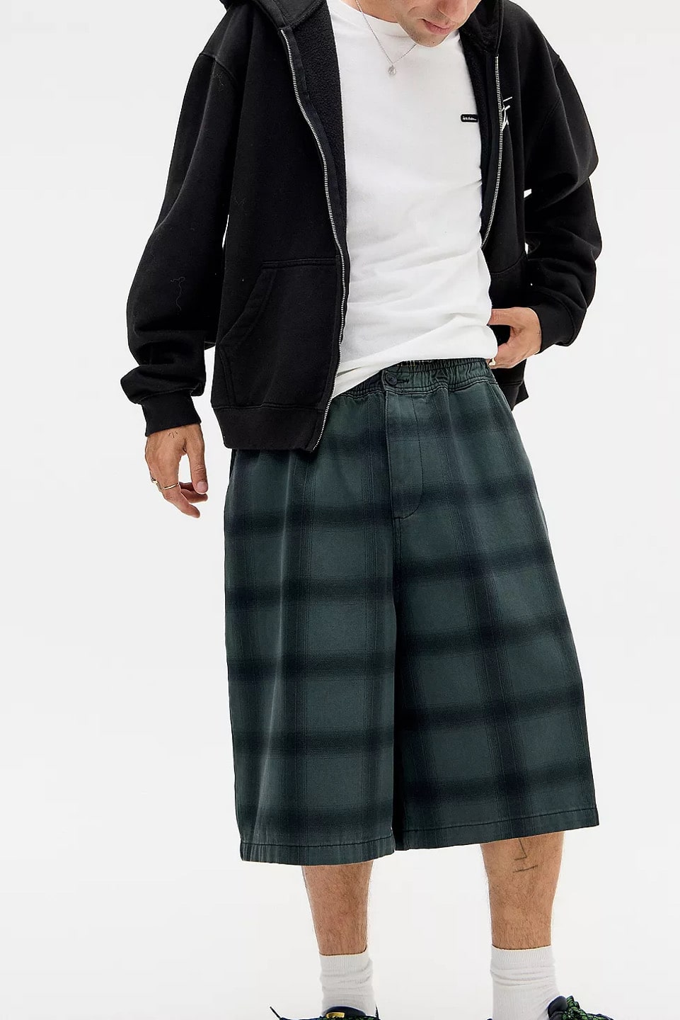 Diese Shorts fühlen sich an wie ein warmer Sommertag in der Stadt – unkompliziert, leicht und genau richtig für alles, was spontan passiert.Das grüne Karomuster bringt sofort Leben in den Look, ohne zu laut zu wirken. Es hat etwas Verspieltes, aber gleichzeitig auch eine gewisse Coolness – typisch Streetwear, die nicht bemüht wirkt, sondern einfach da ist.Gefertigt aus leichter Baumwollpopeline tragen sich die Shorts besonders angenehm. Der Stoff ist atmungsaktiv und weich, perfekt für warme Tage, an denen man sich frei bewegen möchte. Gleichzeitig sorgt der lockere, leicht baggy Fit dafür, dass sie entspannt fallen und nie einengen. Praktische Details wie mehrere Taschen und die längere Schnittform machen sie alltagstauglich – egal ob unterwegs in der Stadt, im Urlaub oder einfach draußen mit Freunden. Was diese Shorts besonders macht, ist dieses Gefühl von müheloser Lässigkeit. Sie sehen nicht so aus, als hätte man lange über das Outfit nachgedacht – und genau das macht den Look am Ende aus.Ein Teil, das man einfach anzieht – und sofort passt alles