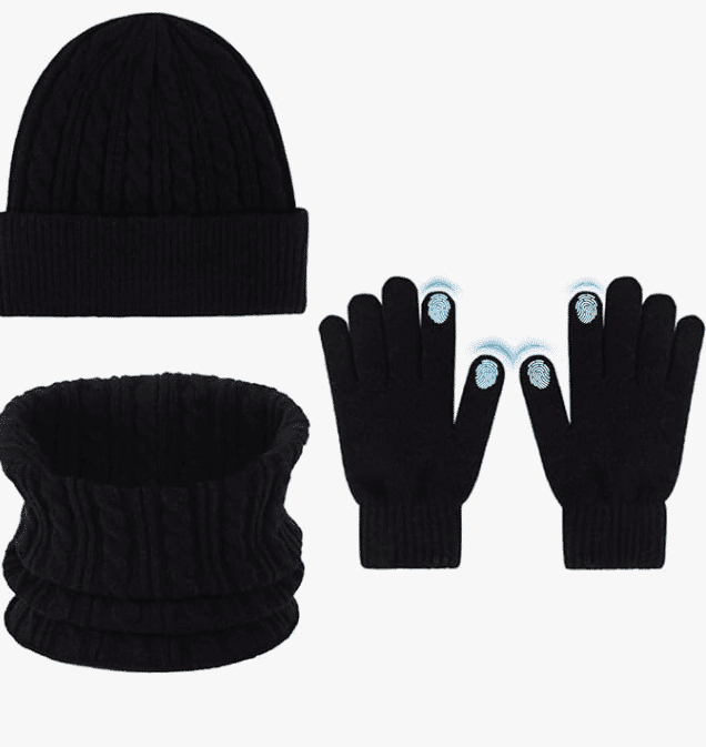 Bei Amazon bekommt ihr gerade ein 3-in-1 Winter-Set bestehend aus Mütze, Schal und Handschuhen.