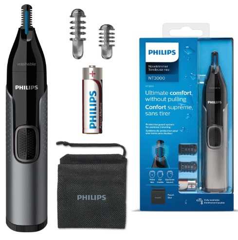 - Lieferumfang: Series 3000 Nasentrimmer, Augenbrauenkamm, 5 mm Präzisionskamm, AA-Batterie