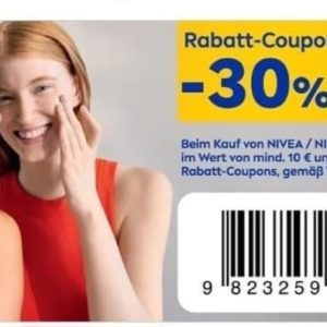 30% Rabatt auf Nivea Produkte, beim Kauf von Ware ab 10 Euro