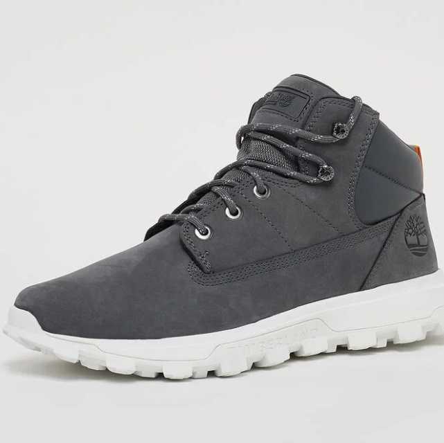 „Die Timberland Treeline Mid Md. Boots kommen in mattem Anthrazit-Grau und erhöhter Laufsohle in Weiß. Die Noppenstruktur der Sohle sorgt vor allem bei Outdoor Aktivitäten für einen sicheren Stand und schützt vor dem Rutschen. Durch die Polsterung am Einstieg und die wattierte Zunge in Grau entsteht ein einmaliger Tragekomfort. Das Logo von Timberland, das im seitlichen Fersenbereich abgebildet ist, verleiht den Boots zusammen mit einer oval zulaufenden Form einen sportlichen Look.“