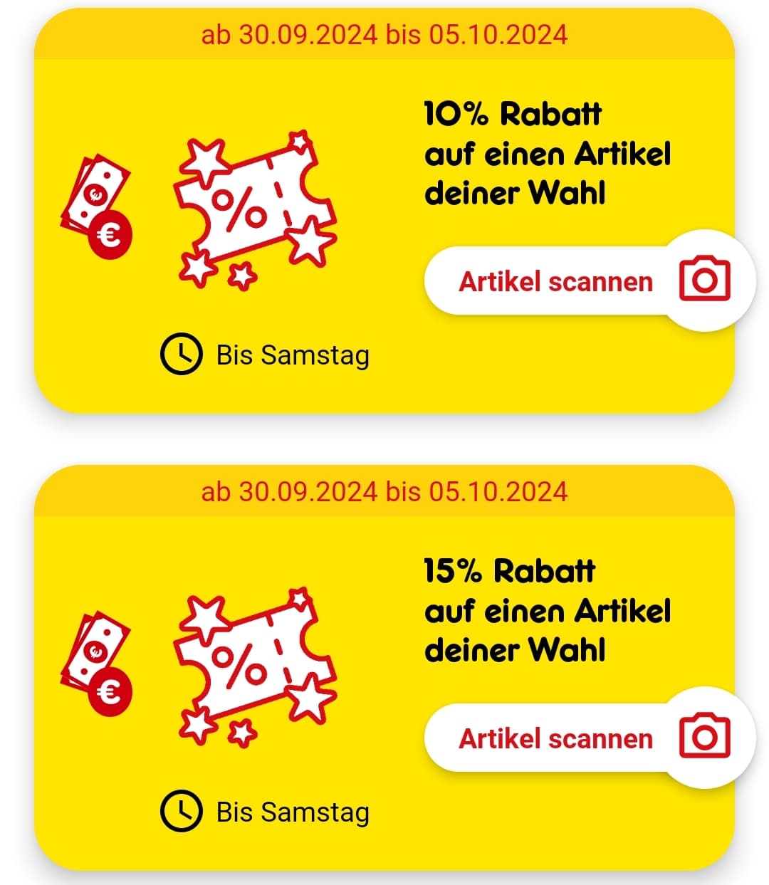 replitz 03.10.2024, 11:13Ich habe die Coupons auch nicht in meiner app aktuell. Hatte diese aber bestimmt schon 3x zu unterschiedlichen Zeiten. Regelmäßiges reinschauen lohnt, da wir dort regelmäßig einkaufen, ist die App sowieso installiert.