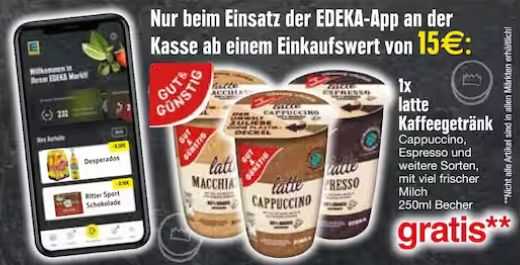 Edeka Südbayern: gut & günstig latte Kaffeegetränk gratis ab 15 € Einkaufswert