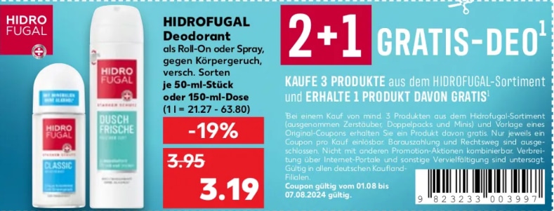 Kaufland ab 01.08.: 3x Hidrofugal Deo