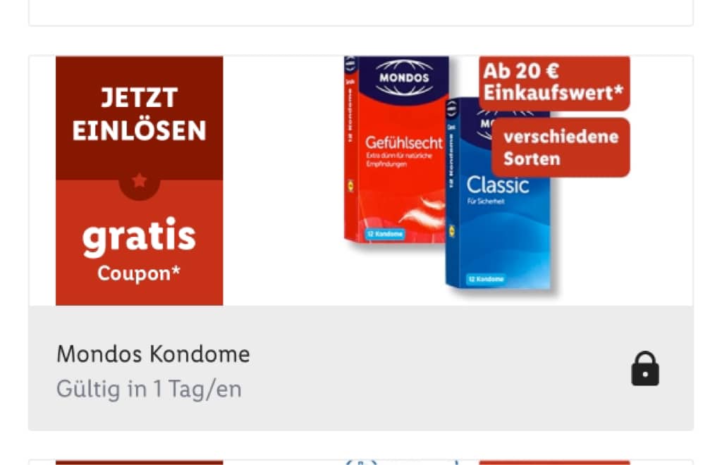 Ab morgen dem 11.10.2021 könnt ihr euch mit der Lidl Plus App eine gratis Mondos Kondome ab 20€ Einkaufswert sichern.