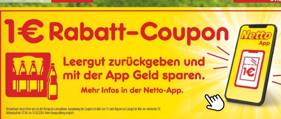 Pfand-tastisch mit der Netto App 1€ zurück (7.-12.8.)