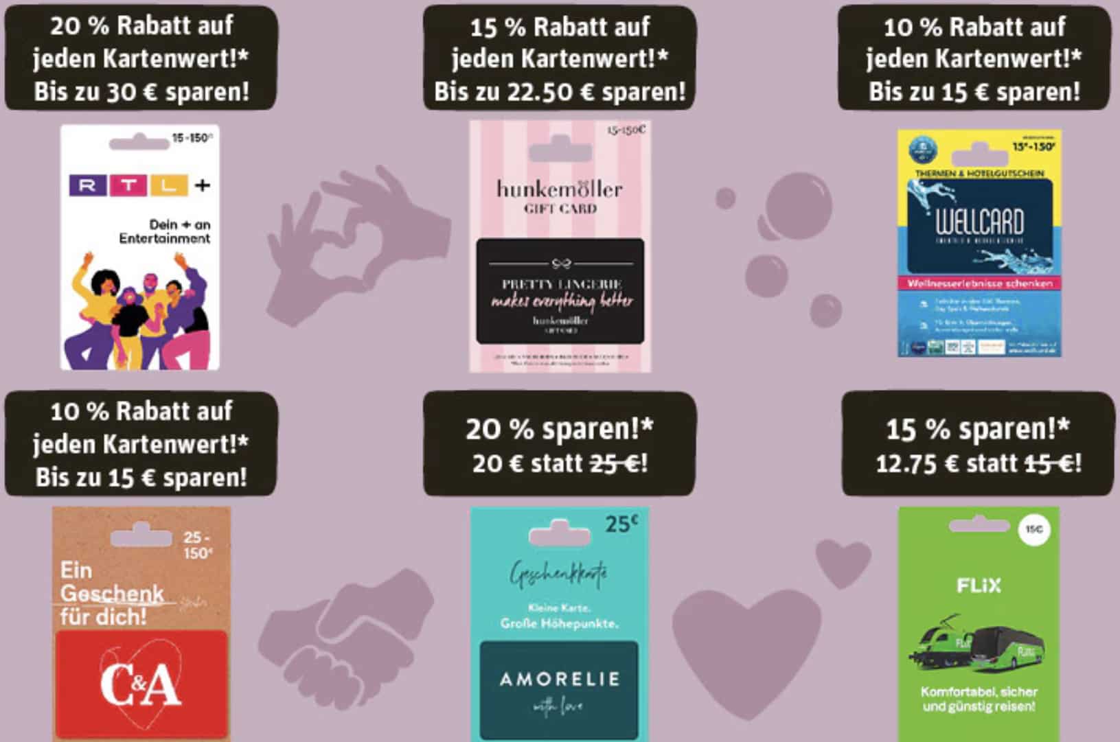 Rabatte in der Rewe Kartenwelt: RTL+, C&A, Hunkemöller, Amorelie, Wellcard, Flix