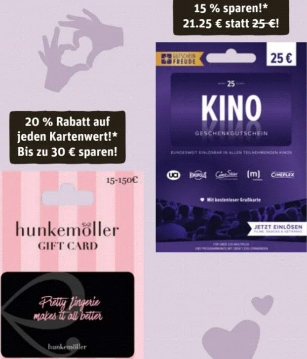 Rewe: 15% Rabatt auf Kinogutschein / 20% auf Hunkemöller Gutschein