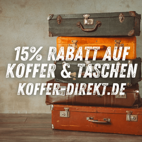 Reisefreunde aufgepasst: Aktuell gibt es bei Koffer-Direkt.de einen 15% Rabatt auf das gesamte Sortiment! 🎉 Egal ob Koffer, Rucksäcke, Taschen oder Reiseaccessoires – hier könnt ihr eure Reiseausstattung günstiger bekommen.