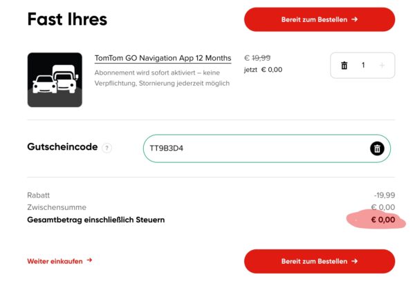 Bock auf smarte Navigation zum Nulltarif? Mit dem Code TT9B3D4 kannst du TomTom GO Navigation ein ganzes Jahr lang gratis nutzen (anstatt regulär 19,99€) und dir das Leben auf der Straße erleichtern. Aber Achtung, dieses Angebot gilt nur für neue Abonnenten (*) – also jetzt schnell zuschlagen!