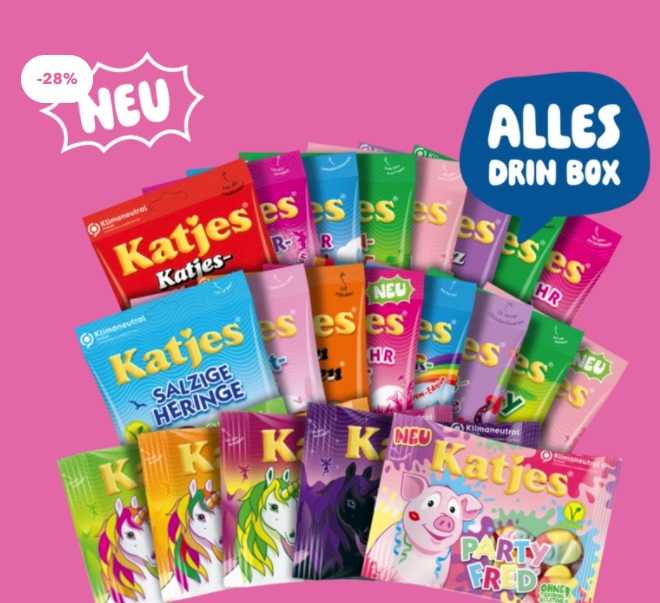 Oh wie lecker – im Katjes Online Shop bekommt ihr gerade eine fette Alles Drin Box für nur 14,99€. Der Versand ist kostenlos.
