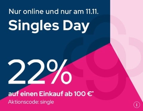 Heute gibt es zum Singles Day 22% Rabatt bei GALERIA.