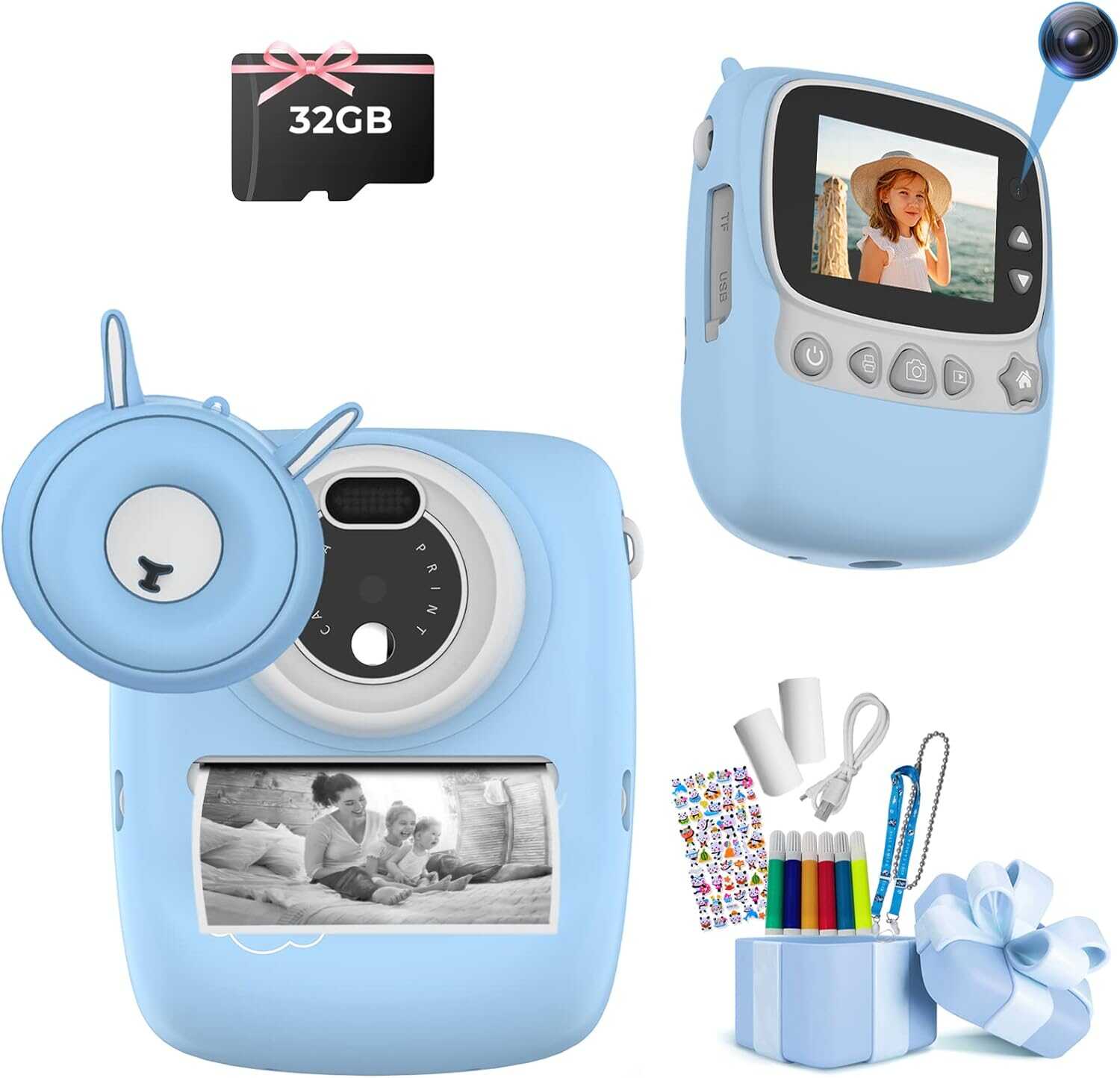 - 🎁 Das beste Geschenk für Kinder: Die Kinderkamera hat ein sehr niedliches Kaninchen-Aussehen und das Gehäuse besteht aus hochwertigem, ungiftigem Weichgummi. Das Gewicht des Körpers beträgt nur 0,6 kg, was für Kinder leicht zu transportieren ist. Sie erhalten: Kinderkamera * 1, 32 GB SD-Karte * 1, USB-Ladekabel * 1, schönes Umhängeband * 1, Schutzhülle * 1, Bedienungsanleitung * 1, Thermodruckpapier * 2, Aquarellstift * 5, Aufkleber *1. Es ist ein tolles Geschenk für Ihr Kind!