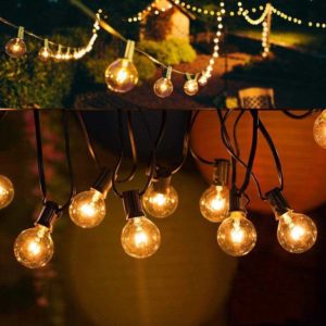 - G40 50+4er Lichterkette – G40 lichterkette Glühbirnen mit 50 klaren Glühbirnen und 5 zusätzlichen Ersatzbirnen. Ohne zeitliche oder räumliche Einschränkungen. Lampenabstand: 12 Zoll, Gesamtlänge 50FT.