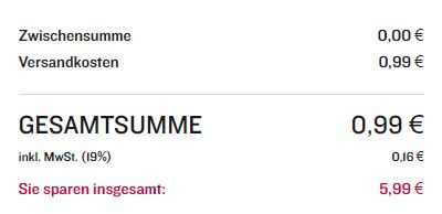 bd8505 (Gast) 24.09.2018, 21:16 #@Jule192: War auch erstmal verwirrt. Fakt ist, dass diese Aktion 5 € Rabatt + VSK frei (0,99) beinhaltet. Da ich im Warenkorb gesehen habe, dass die VSK angezeigt werden, aber der Rabatt in Höhe von 5,99 € dargestellt wird. Die wollten damit einen Freebie vermeiden.