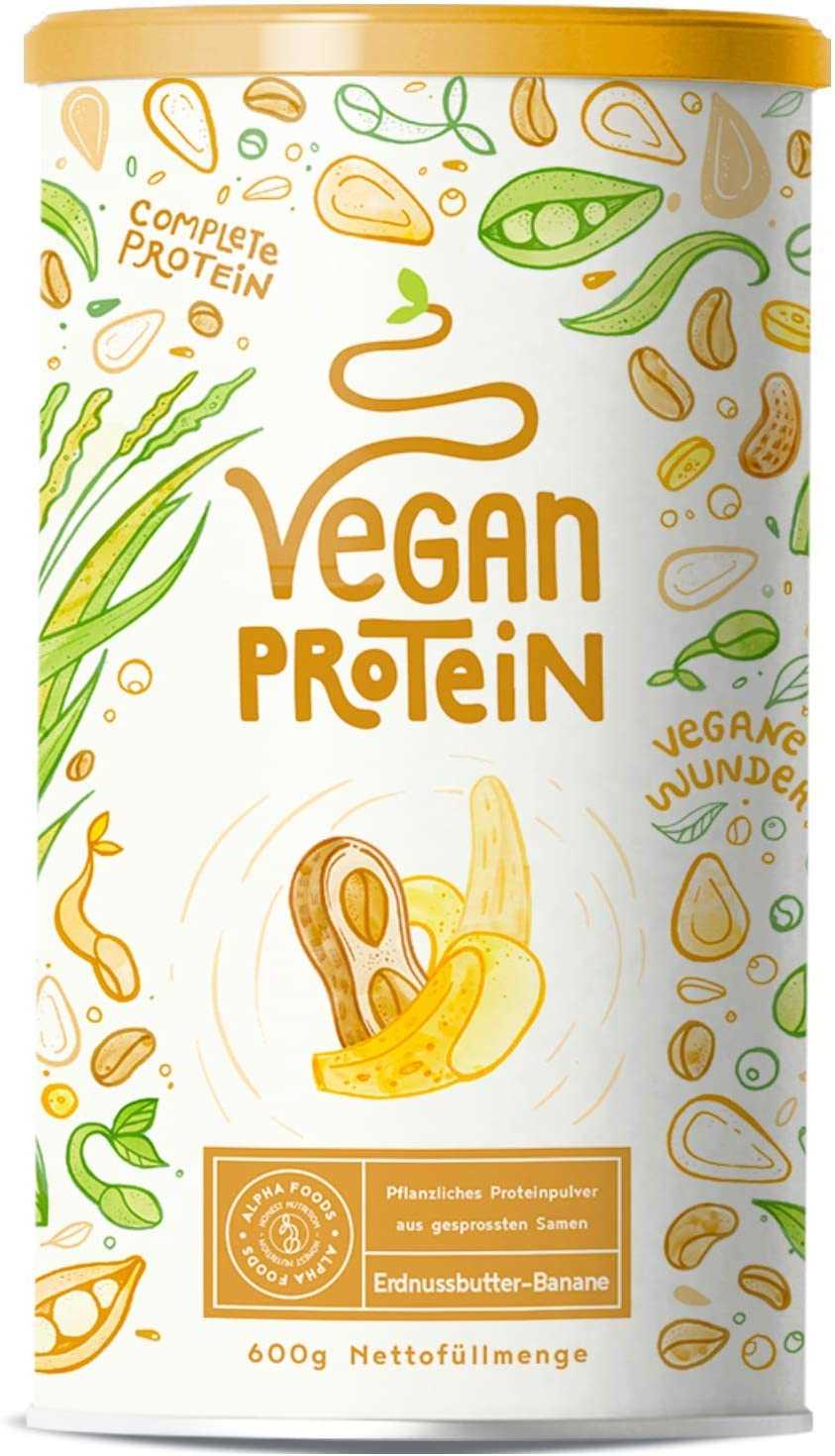 Alpha foods Erdnussbutter-Banane 600 Gramm veganes Proteinpulver – Amazon Prime