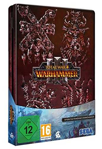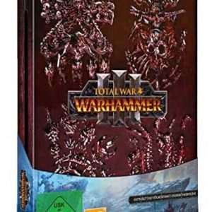Limitierte Edition in geprägter Metallbox, doppelseitiges Poster mit Warhammer III-Kampagnenkarte und Cover-Illustration, Sticker mit Chaossymbolen sowie DLC „Völkerpaket Ogerkönigreiche“.