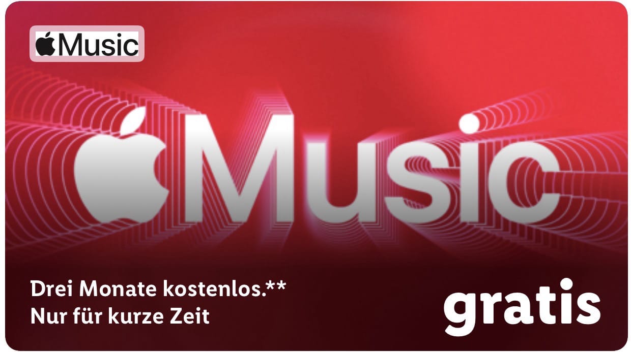 Vorteil: Lidl Plus-Kunden sichern sich bis zu 3 Gratismonate Apple Music**. Für neue Abonnent:innen, für Kunden, die bereits ein aktives Abonnement bei Apple Music besitzen, gilt der Vorteil nicht.