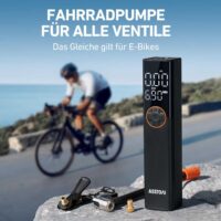 Perfekt für die Fahrrad Saison: Die elektrische Luftpumpe von AstroAI bekommt ihr jetzt für nur 17,28€ dank Gutscheincode MM5W9SEM – Sie ist mit allen gängigen Fahrradventilen kompatibel und schafft maximal 10 bar.